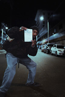 Street poet, slinging his poetry to get off the stree.